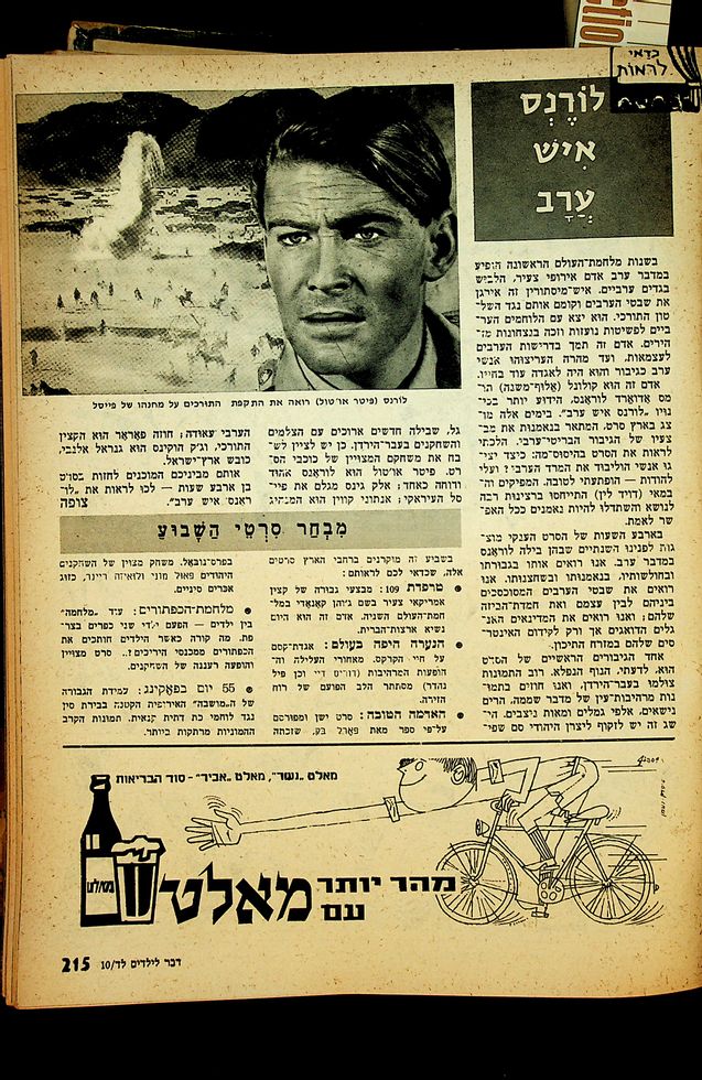 ביקורת על הסרט "לורנס איש ערב " מהשבועון "דבר לילדים". בעת ההקרנה המקורית של הסרט.