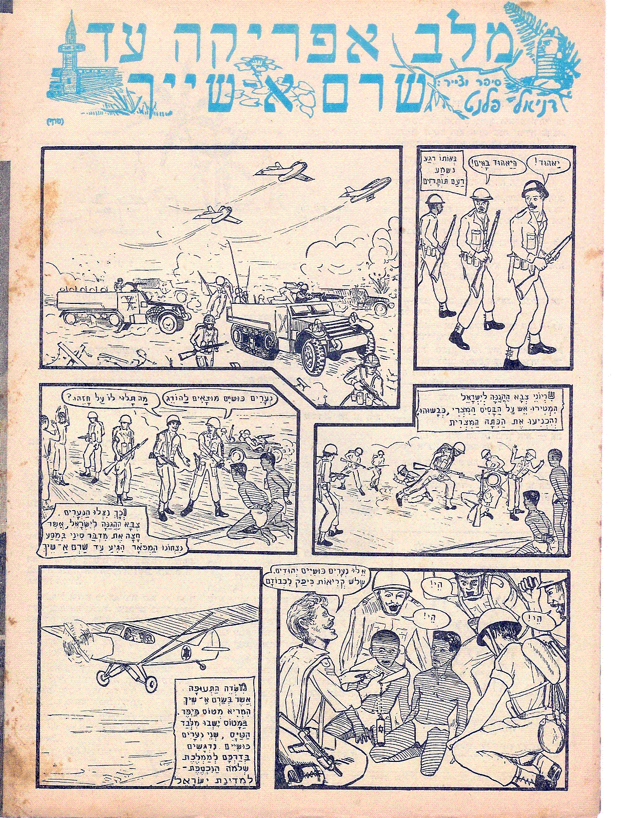 […] דני פלנט " מאפריקה ועד שארם עד שייך " סיפור שפורסםבשבועון "הארץ שלנו"  ב-1958. זהו סיפורו של  יהודי מאתיופיה שמגיע ללב אפריקה בחיפוש אחרמדינת ישראל ושם מצטרפים אליו שני נערים כושים גם הם מצאצאי שב שמתייחס על אנשישלמה ויוצאים לישראל בדרך הם נלכדים בידי המצרים בשארם א שיך אך משוחררים בידיכוחות ישראל. זהו סיפור הקומיקס הראשון ואולי היחיד עד כה שגיבורו הואבן אתיופיה .והואמעניין בגלל הצורה הסימפטית והכמעט הירואית שבה מוצגים השחורים הפלאשים ואנשי שבטיהג'ונגל […]