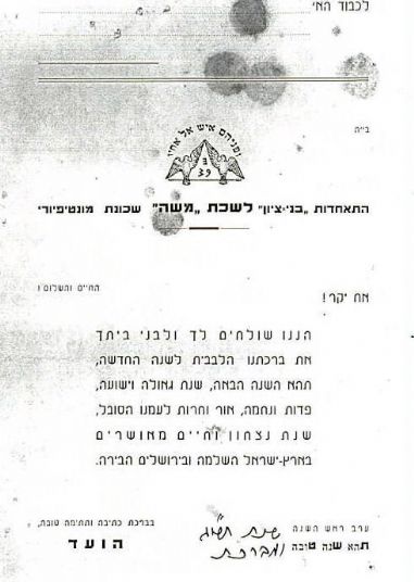 מכתב מועד השכונה "גנניה " לעיריית תל אביב. 1926.