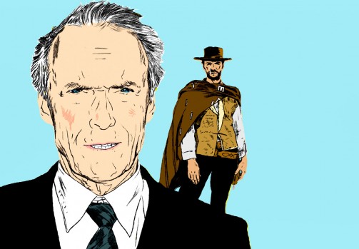 האיש ללא שם מאחורי קלינט איסטווד. ציור מאת רות גווילי ב"ישראל היום "הטוב הרע והמפואר"