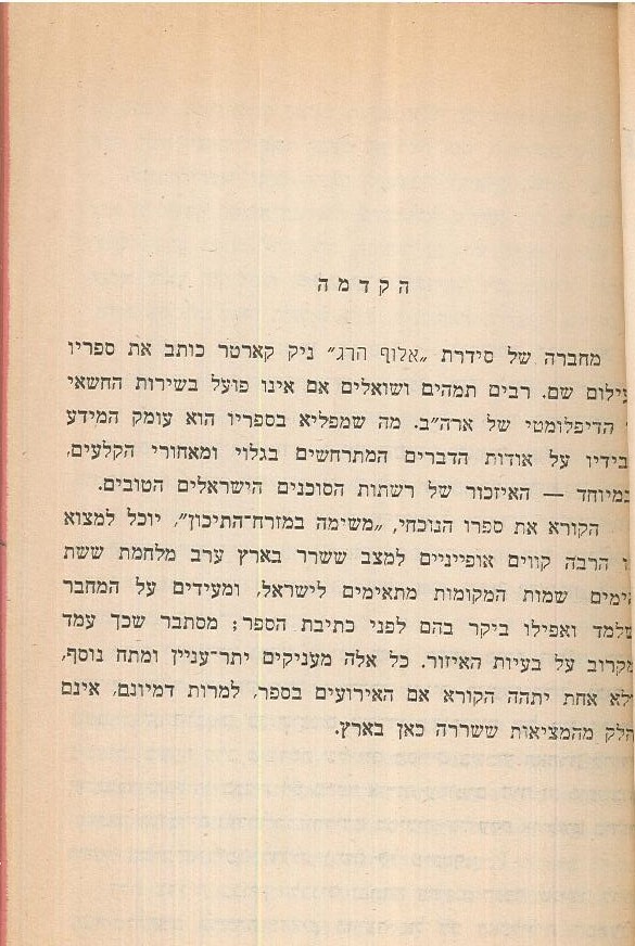 הקדמה אנונימית למהדורה הישראלית של "ניק קרטר במשימה במזרח התיכון".