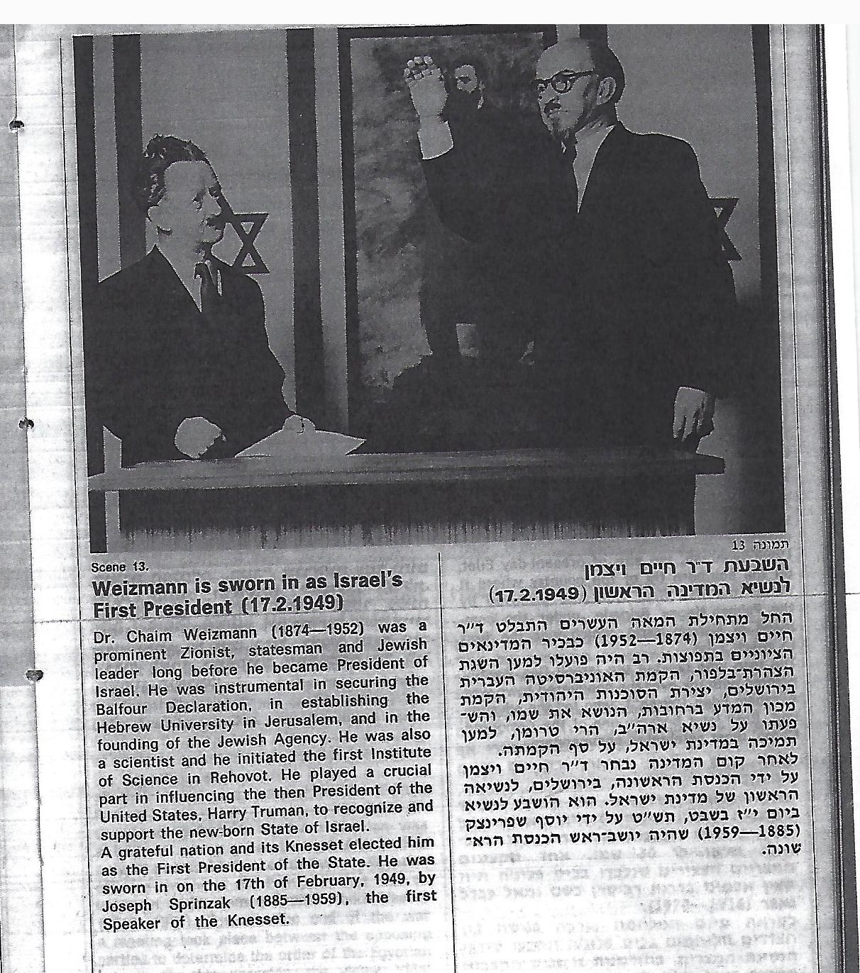 חיים וייצמן מושבע כנשיא המדינה הראשון.