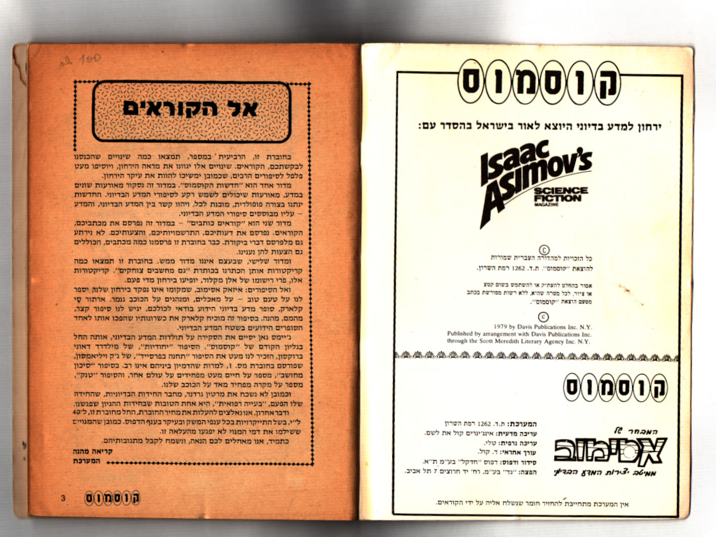 ,כך שאסימוב הופיע בשנים האלו 1978 -1979 באופן קבוע בו זמנית בשני מגזינים מתחרים של מדע בדיוני בעברית.