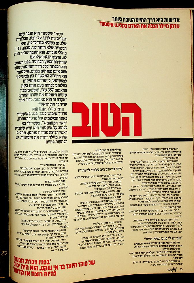ולציון יום הולדת…הנה אחד הראיונות המפורסמים ביותר עימו ,אולי הראיון המפורסם ביותר בכלל שקיים עימו הסופר נורמן מיילר בשנת 1983 כשאיסטווד עוד היה רק שחקן מפורסם ועדיין לא במאי מפורסם.