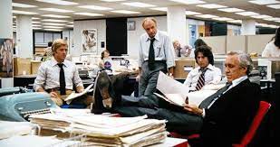 בן ברדלי עורך הוושינגטון פוסט בגילומו של ג'סון רוברדס ביחד עם אנשי ציוותו כאשר הם חושפים את פרשת ווטרגייט. בסרט "כל אנשי הנשיא"