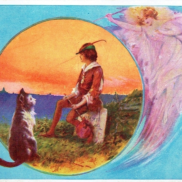 ולאחר מחשבה יצר ככל הנראה בהשראת התמונה באופן אקראי סיפור בדיוני לחלוטין על האיש ששמו הופיע במקרה בתמונה ,אולי כמחזה לבובות אולי כבלדה עממית על אותו דיק ויטינגטון וחתולו.