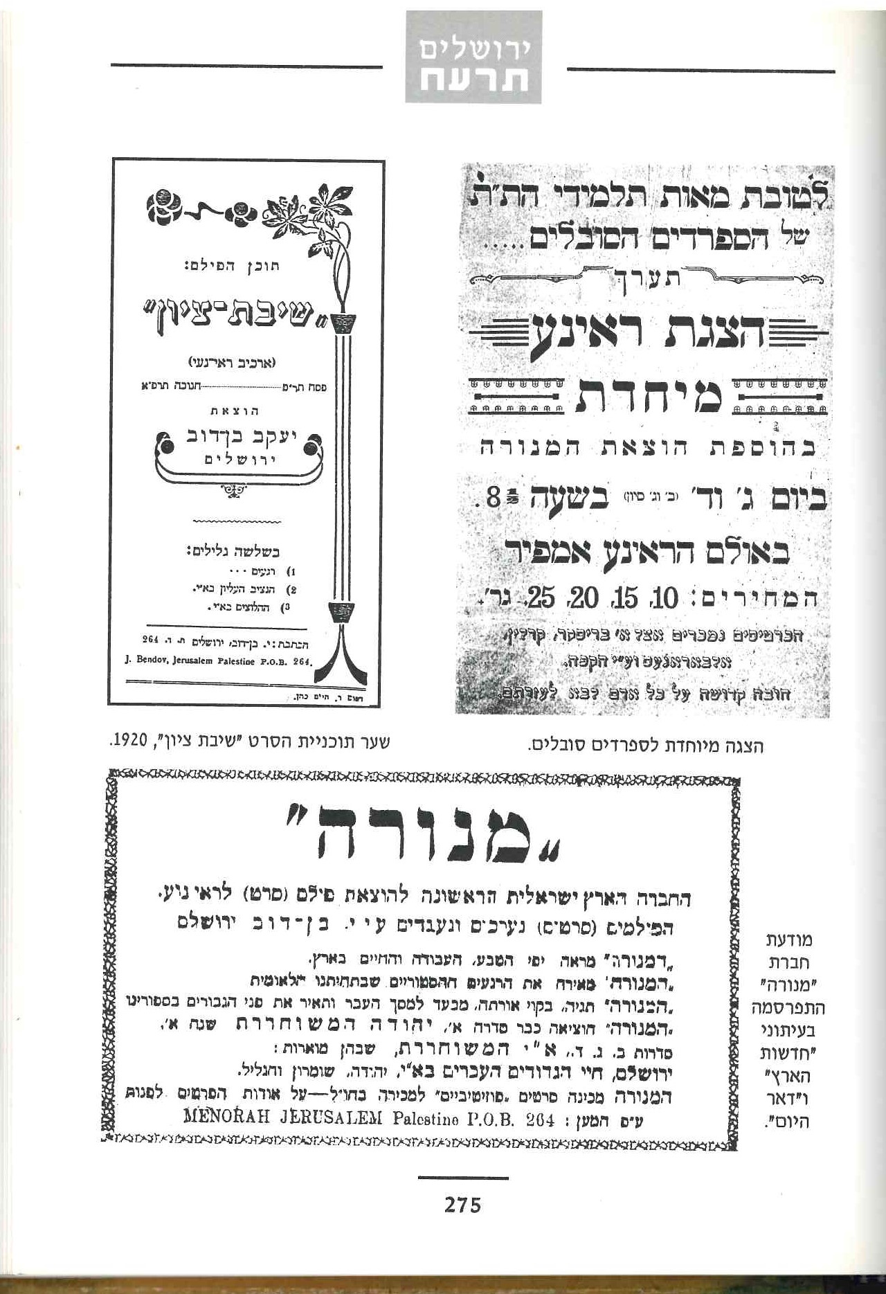 מה שמעניין בהקשר זה הוא שהדוד יעקב הכיר היטב את חלוצי הקולנוע הארץ ישראלי ירושלים סגל ונתן אקסלרוד יוצרי יומני הקולנוע של התקופה שהיו שכניו בשכונת מונטיפיורי שם היה לו מחסן של בית הדפוס שלו.