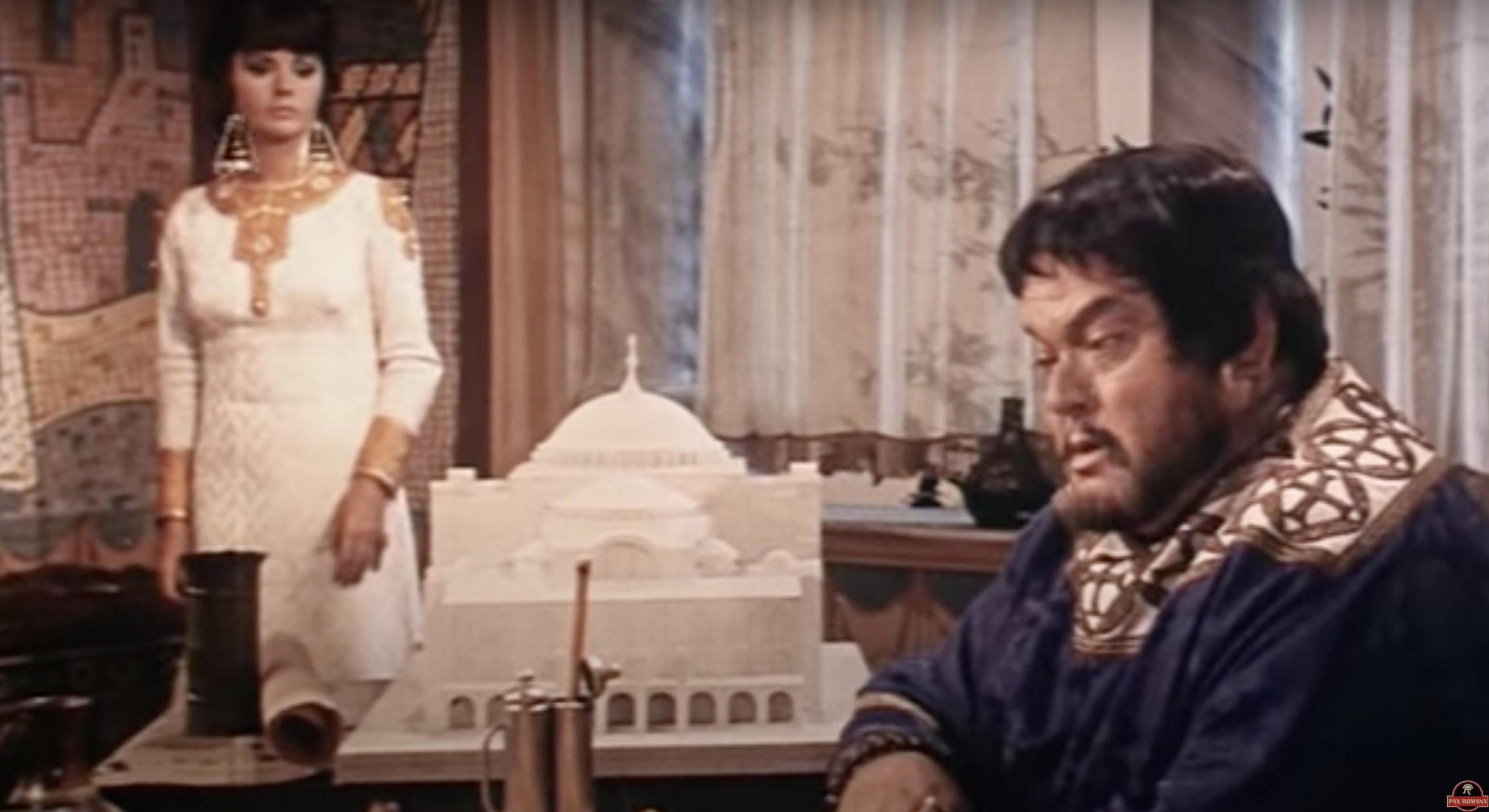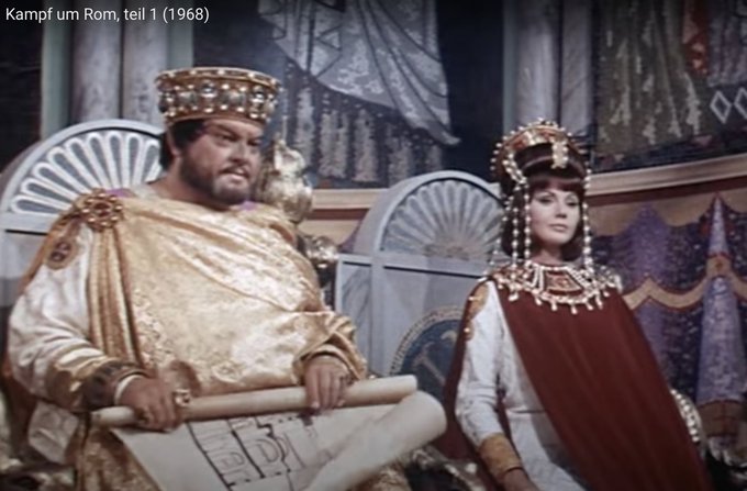 הקיסר יוסטיניאנוס הוא אורסון וולס והקיסרית תיאודורה (סילביה קוסצ'ינה) בסרט הגרמני הענק מ-1968 "המאבק על רומא"או