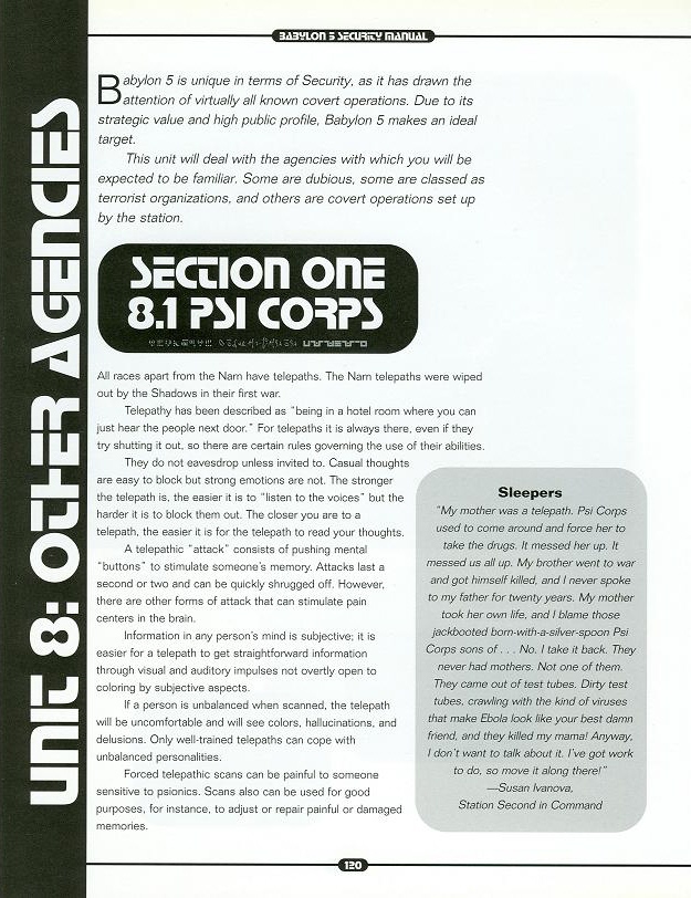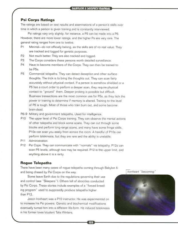 פרטים על אירגון "חיל הטלפטים " מתוך "מדריך הביטחון של בבילון 5" "