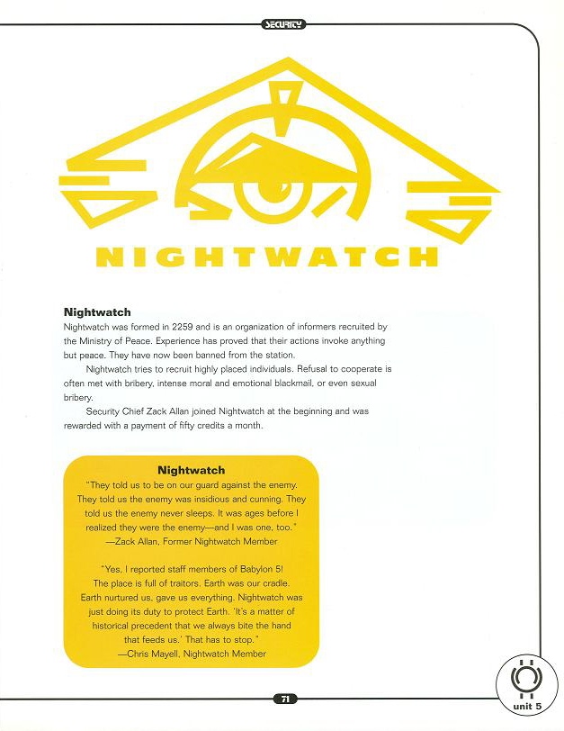 פרטים על אירגון "משמר הלילה" מתוך "מדריך הביטחון של בבילון 5" "